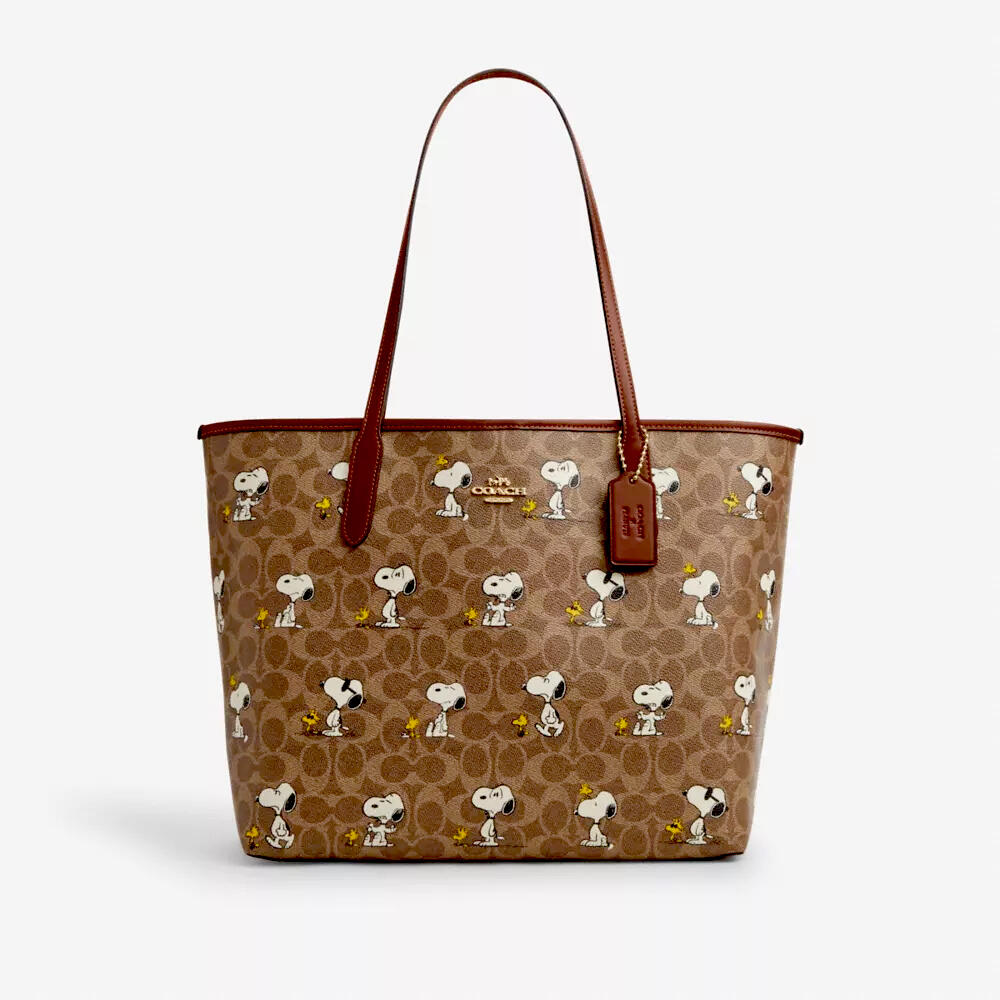 Spacious coated-canvas tote featuring the limited Coach x Snoopy collab.